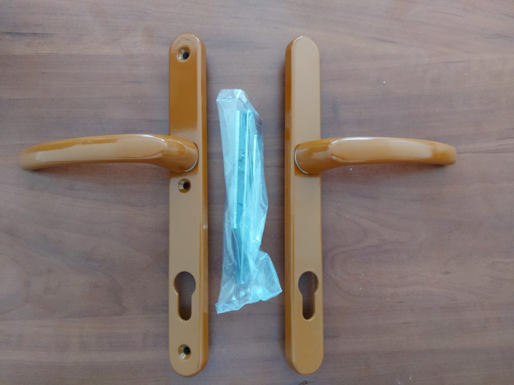 Dverové kovanie s otvorom pre obojstrannú vložku, vhodné predovšetkým do exteriéru aj interiéru. Jednoduchá montáž.