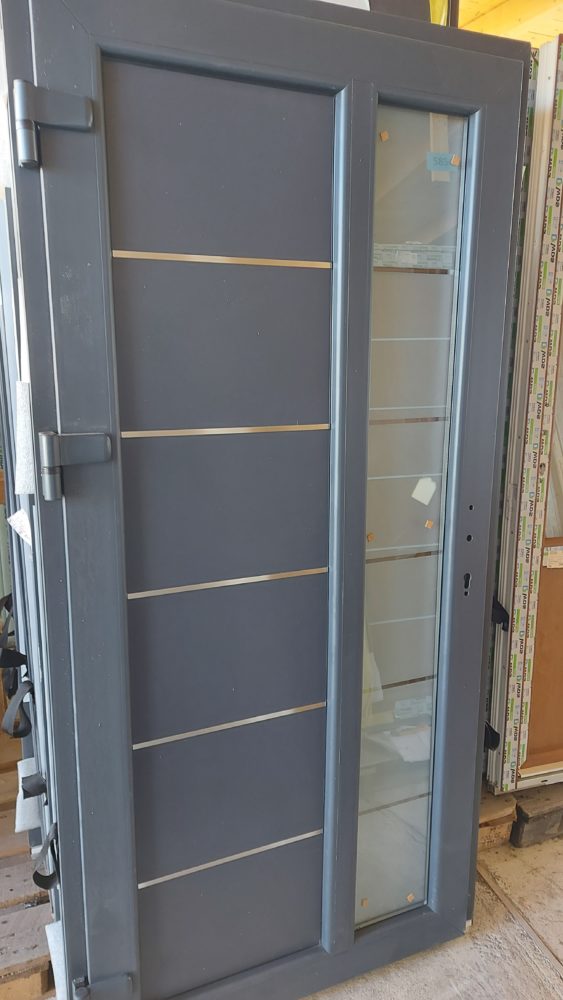 Nové, antracit, jednokrídlové, plastové vchodové dvere, ktoré sú presklené, s rozmermi š100 cm a v205 cm, s hliníkovým prahom, 5 bodovým zamykaním a s 3 kusmi 3D závesmi dverí. V cene produktu je kľučka, zámok s 5x kľúčmi. Okná sú zasklené izolačným dvojsklom .