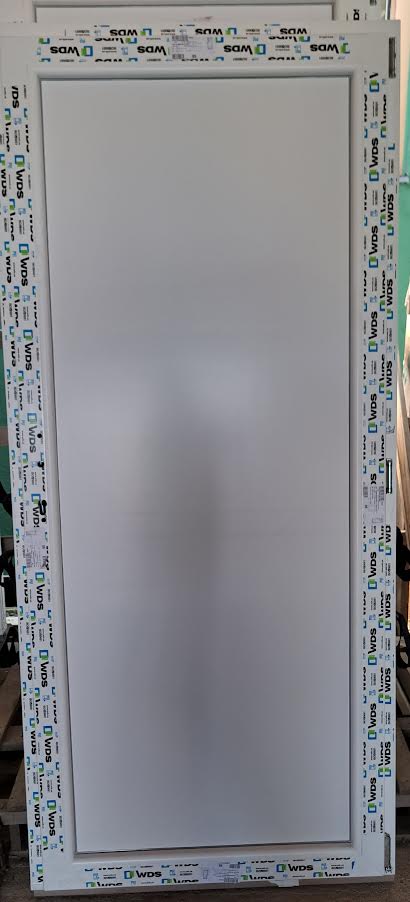 Nové, jednokrídlové, plastové vchodové dvere, pravé, biele, s rozmermi š 95 cm a v 205 cm, s hliníkovým prahom, 1 bodovým zamykaním a s 3 kusmi 3D závesmi dverí. V cene produktu je kľučka, zámok s 5x kľúčmi.